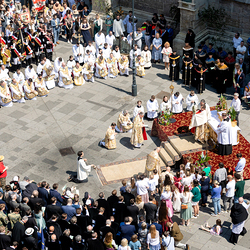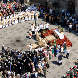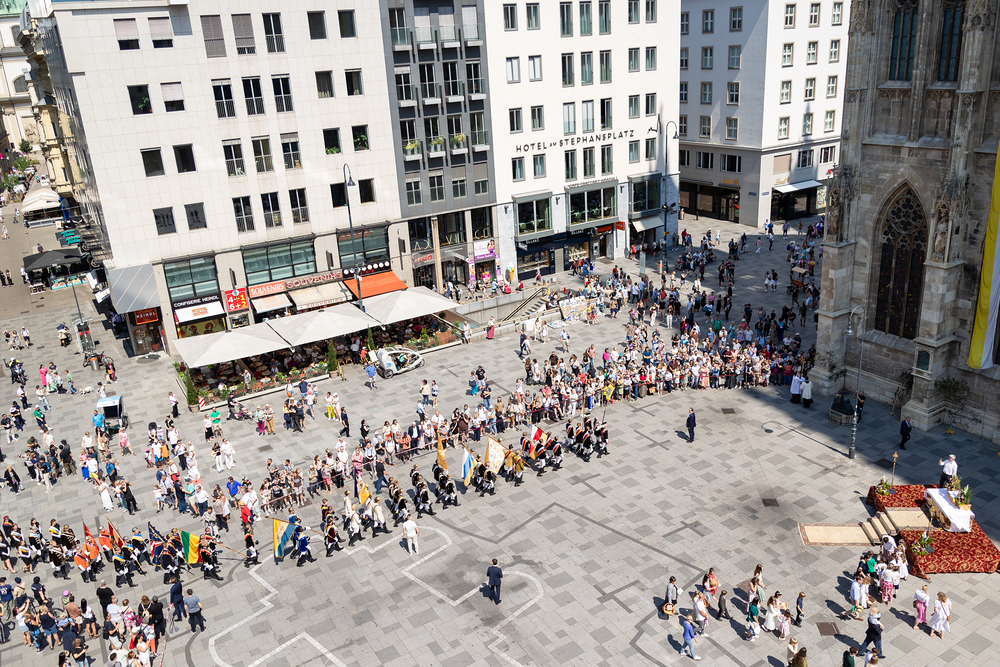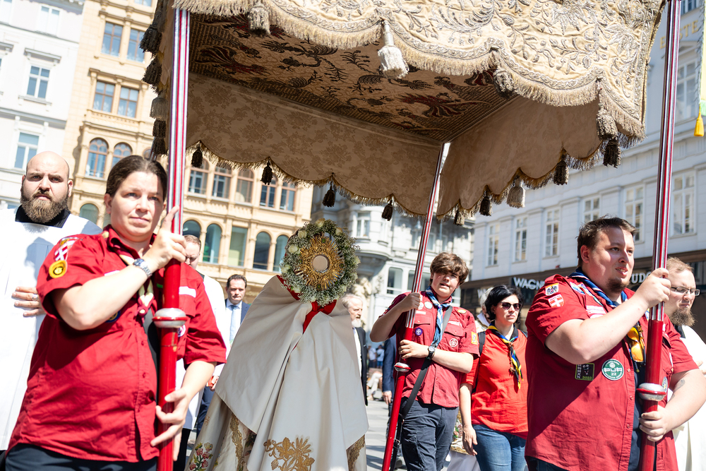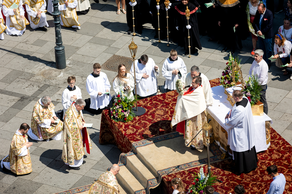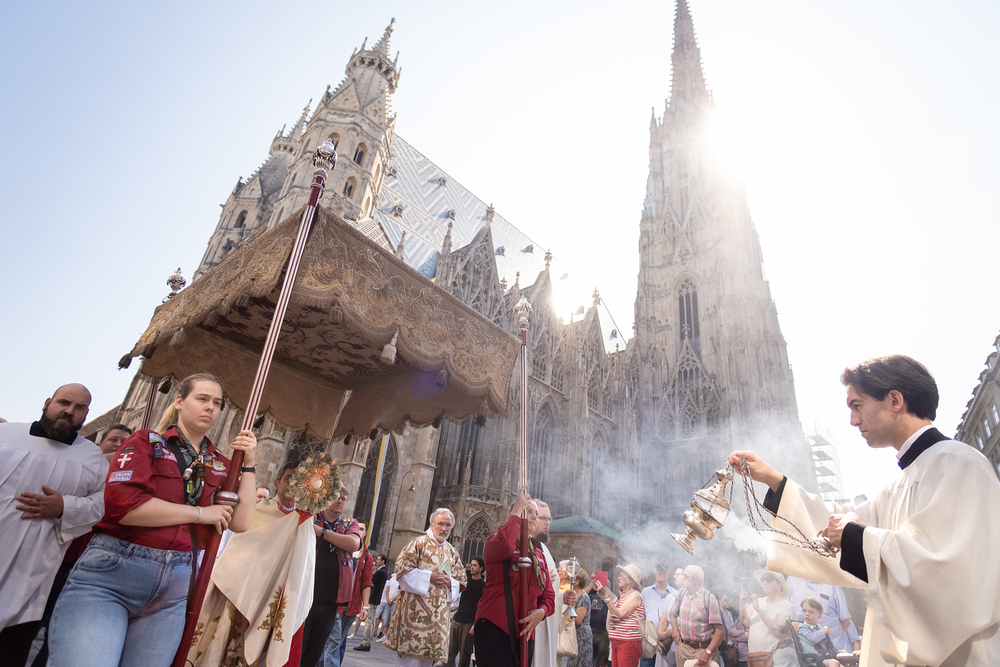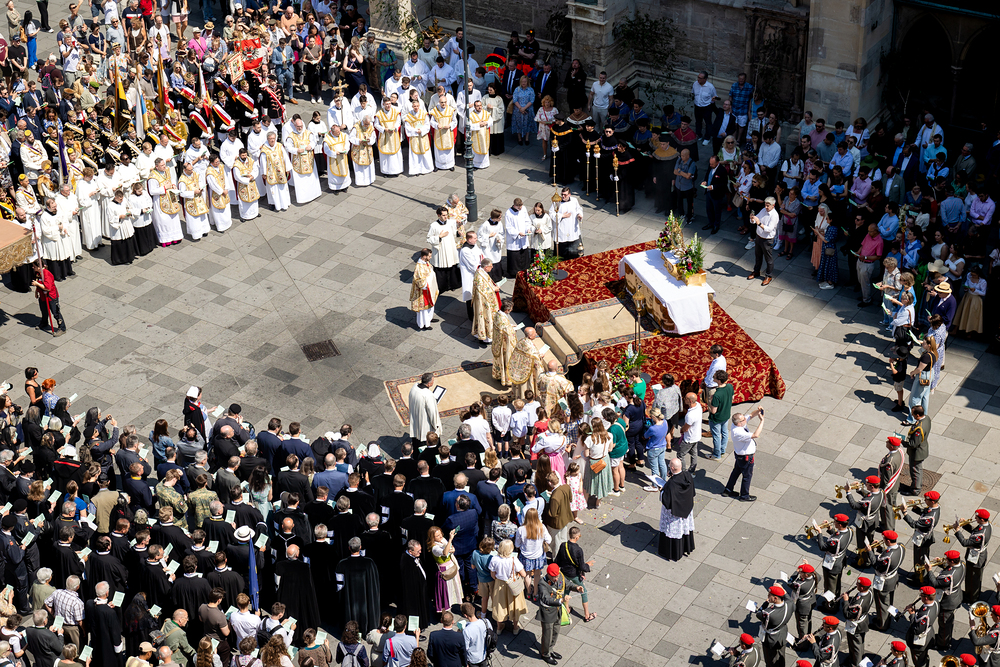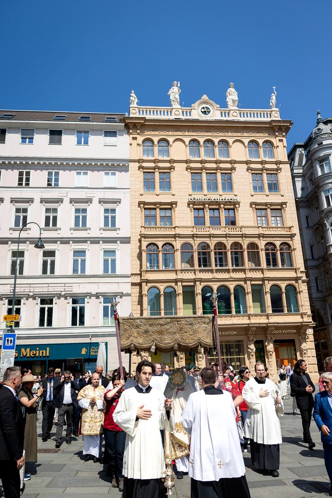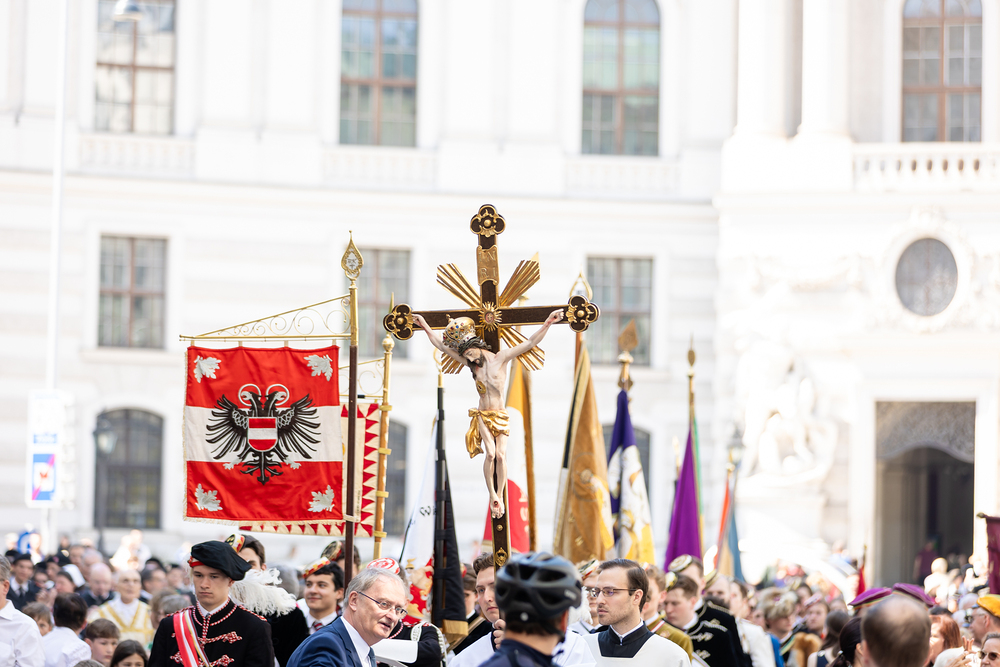 Josef Grünwidl betonte beim Stadtumzug anlässlich Fronleichnam die untrennbare Verbindung zwischen dem religiösen Feiertag und der christlichen Verantwortung, Gottes Schöpfung zu bewahren und eine „ökologische Umkehr“ angesichts der Klimakrise einzuleiten. Er dankte allen, die durch nachhaltiges Handeln und politischen Einsatz dazu beitragen, notwendige Maßnahmen zu ergreifen, um die dramatischen Folgen des Klimawandels abzuwenden. Die Fronleichnamsprozession, die vom Stephansdom ausging und Stationen am Michaelerplatz sowie am Graben bei der Peterskirche umfasste, zog erneut zahlreiche Gläubige und kirchliche Gruppierungen an. Auch politische Vertreter waren anwesend. Wir waren mit der Kamera dabei.